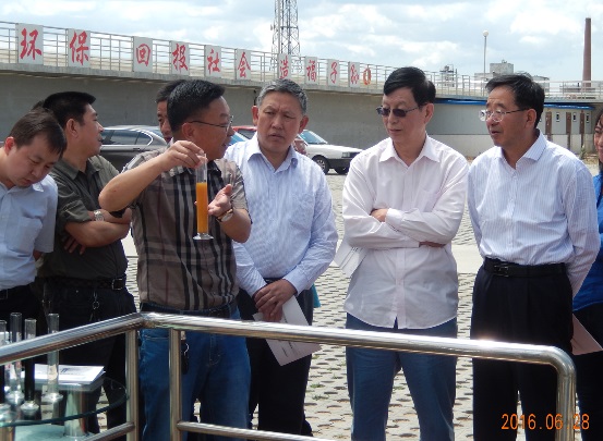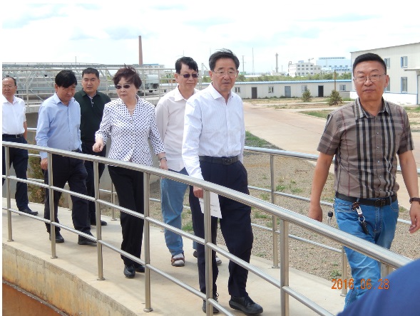 2016年06月28日上午,内蒙古自治区政协副主席、党组副书记陈羽、呼和浩特市政协副主席李宏一行在呼和浩特市环保局副局长金瑞山、托克托县县长郭志钢、副县长高巴图、托县环保局领导的陪同下,莅临米兰官方网页版参观考察,就金河环保的生产情况、生产工艺流程以及出水指标等方面进行了了解,米兰官方网页版总经理田中宏、副总经理楚新华全程陪同讲解。